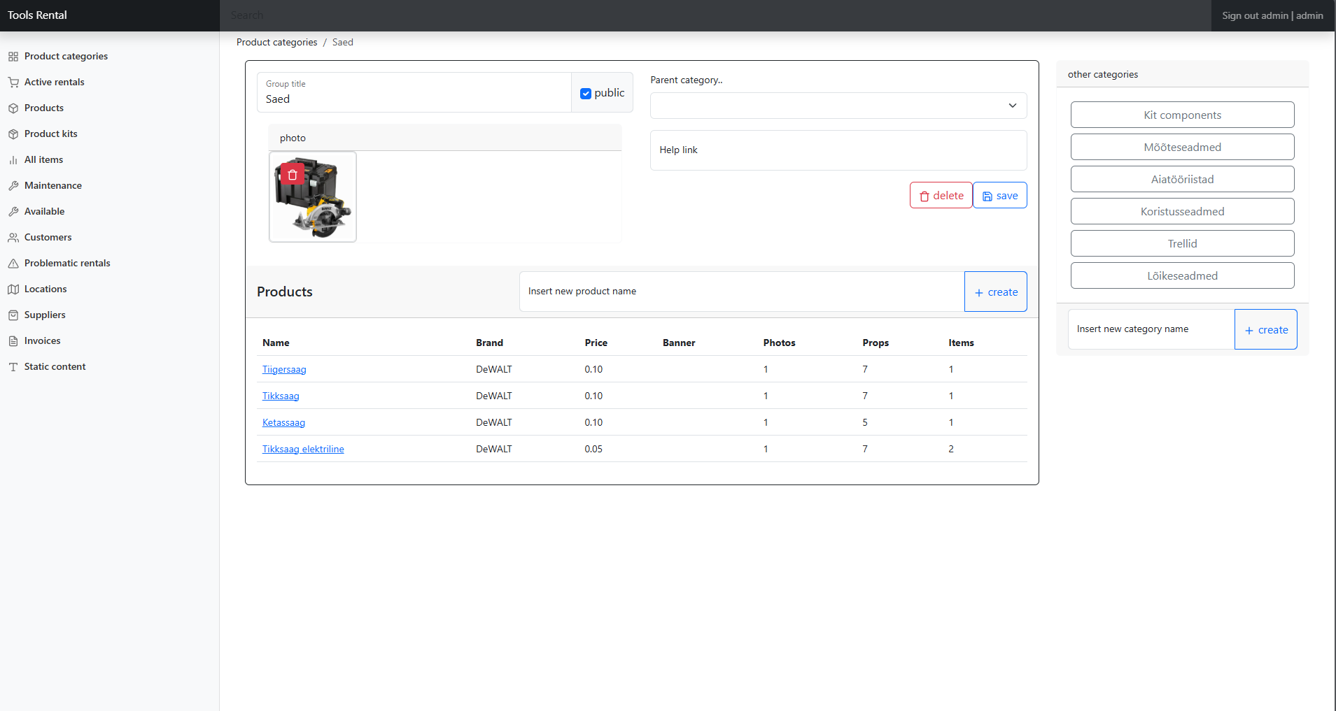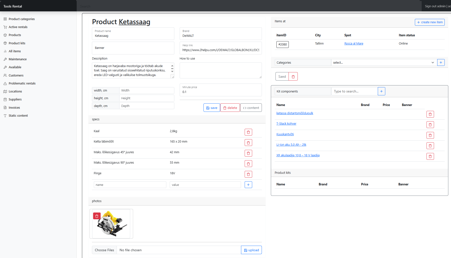 Admin dashboard